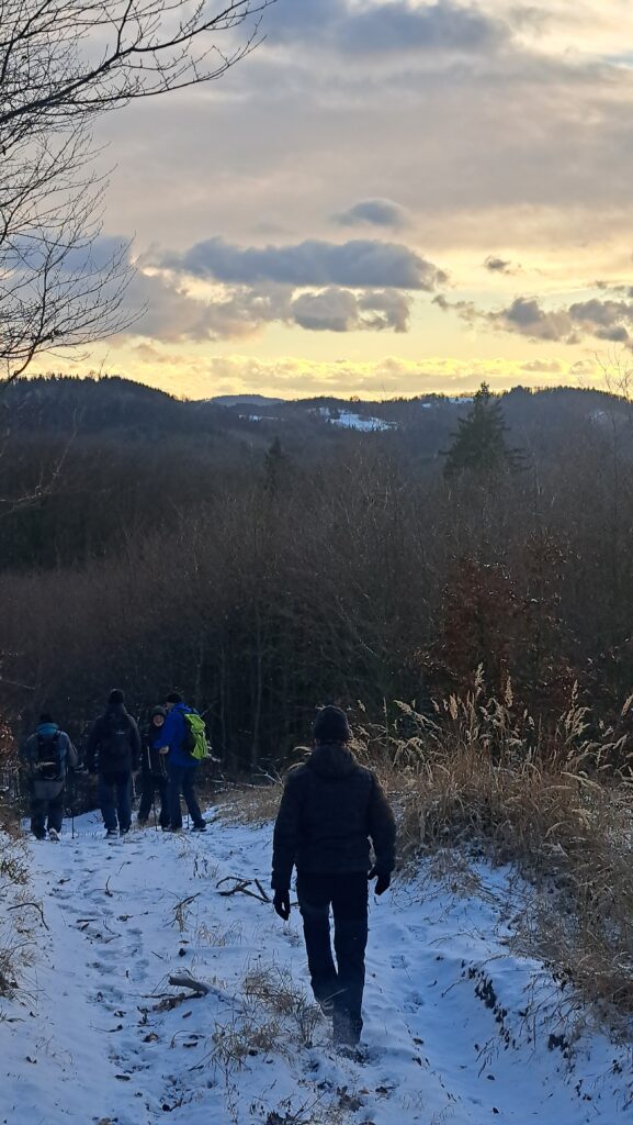 Že bychom se vůbec nezahřívali ohnivou vodou to netvrdím…..dolu cyklostezka do Zbrojovky do kopce po žluté….hřeben doprava dolů Kozí hřbety…..